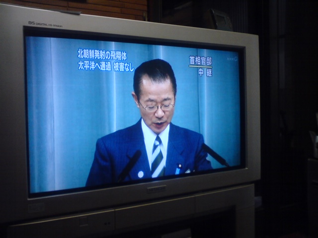 ミサイル発射による記者会見を開く河村官房長官090405-02_missile